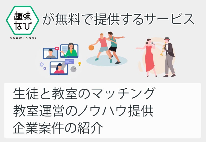 1)生徒の集客生徒が教室やレッスン検索し、予約や問い合わせが可能です。2)ノウハウ提供オンラインレッスンや資格取得、教室運営に関するノウハウを学べます。3)企業案件の紹介趣味なび関連サービス「Waccas」に登録する事で企業案件を受けて報酬を受け取る事ができます。